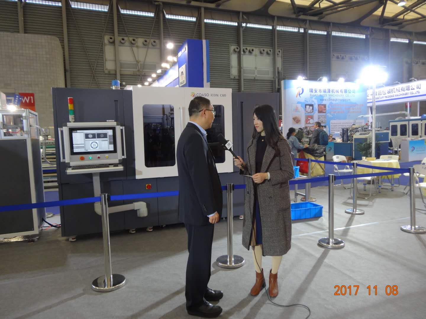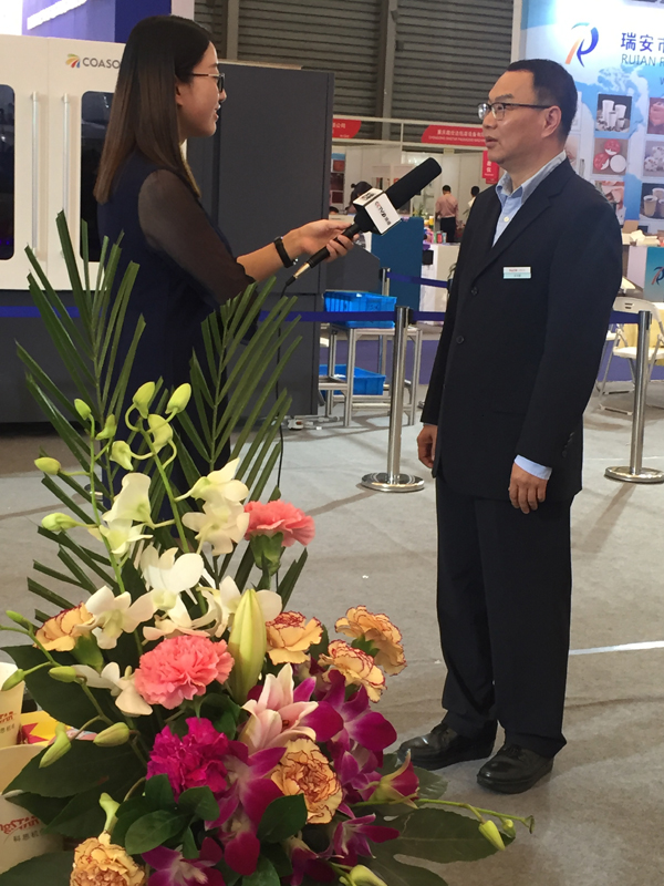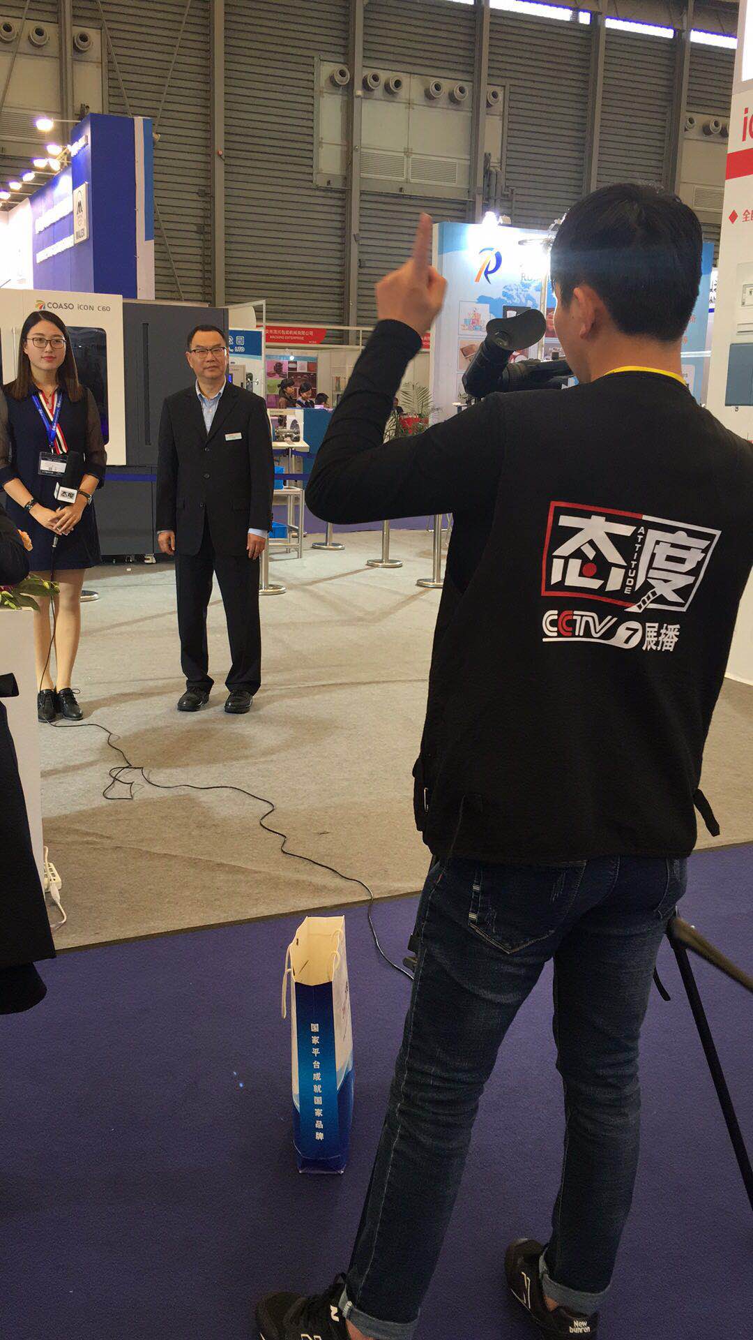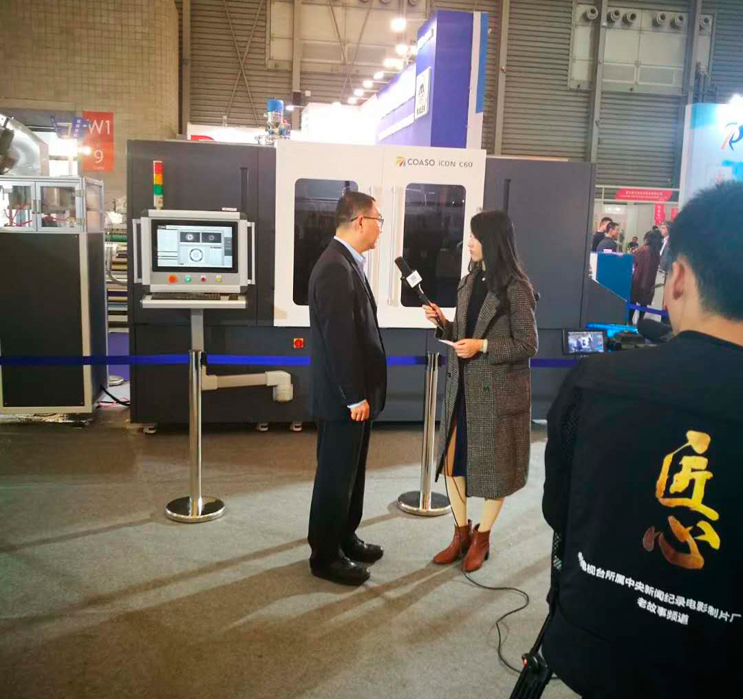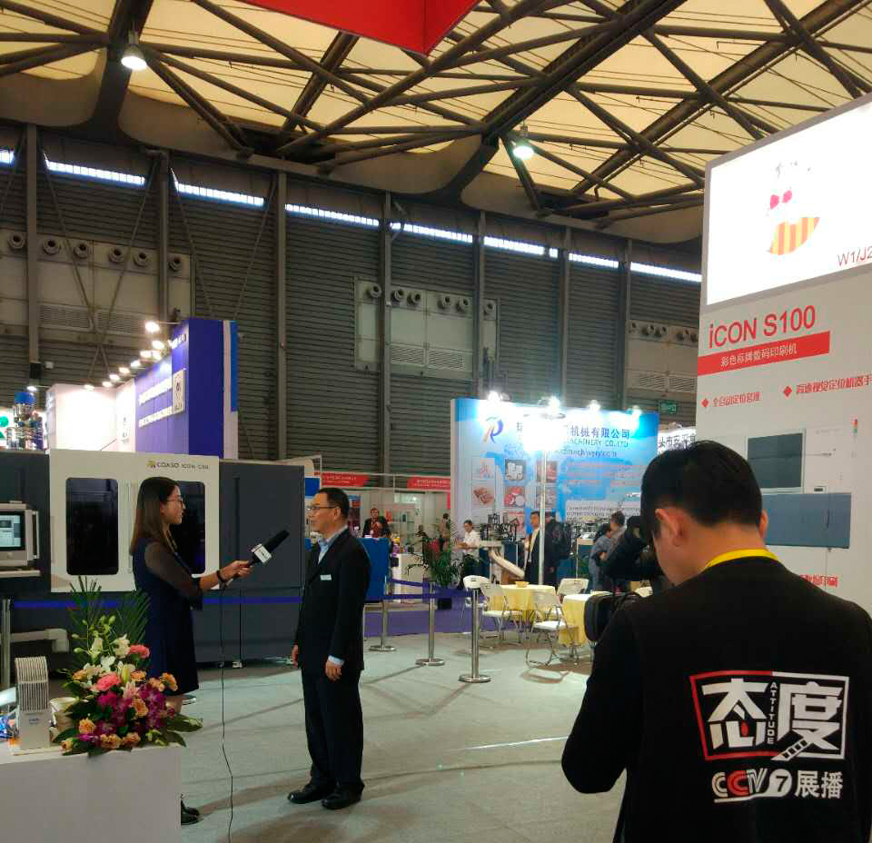 2017年11月8日,SWOP2017包装世界(上海)博览会,央视7套、9套记者先后专访了江苏科思机电许冲波董事长。许董就公司国内的iCON C60高速瓶盖彩色数码印刷机的一次成型双二维码印刷等核心技术做了简要介绍,同时强调企业只有创新创造,才能可持续发展,实现中国梦!